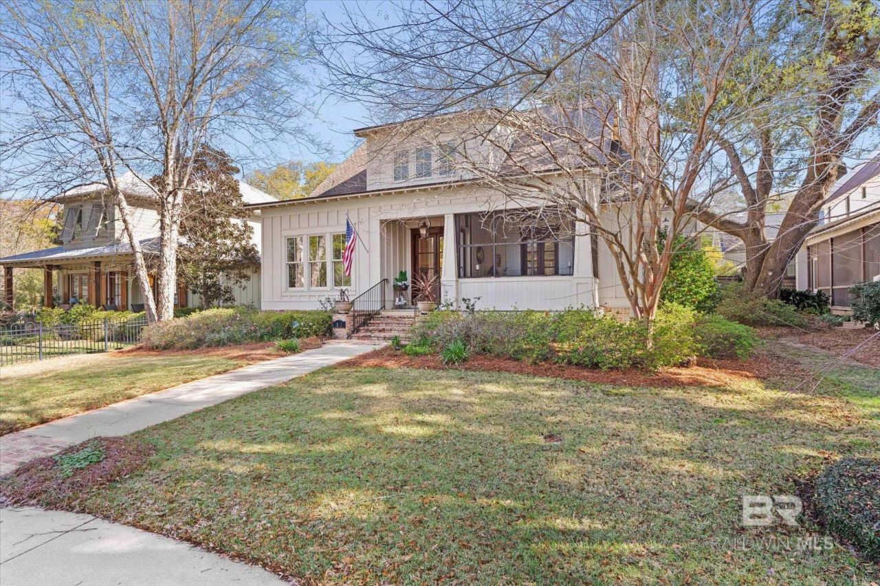 Located in the heart of the Fruit & Nut District only 2 blocks to Mobile Bay and a few more blocks to downtown Fairhope, this 2012 Custom built home was designed by Bob Chatham Home Designs and features 3,264' with 4 Bedroom/3.5Bath in Main House PLUS an ADDITIONAL 576' in the Guest House with 1BR/1BA over the Double Garage. Home features include High Ceilings, Sinker Pine Floors and Antiques Doors throughout the Main living areas, Open concept floor plan, Separate Dining Room, Gourmet Kitchen with Marble Countertops, Center Island, Breakfast Bar, Custom cabinetry, Wolf Gas Range with Pot-filler, Sub-Zero Refrigerator, Bosch second oven, Warming Drawer and Ice maker, Walk-in Pantry, Coffee/Dry Bar, Great Room with Woodburning Fireplace and Gas Starter, Primary BR/BA Down with Gas Fireplace Insert, Primary Bath with Walk in Shower and Large Soaking Tub, Half Bath and Laundry downstairs, 2BR with Shared Bath and 4th BR with Private Bath upstairs, Screened Porch, rear Alley to Garage, Outdoor Pergola with Fireplace (wired for outdoor Kitchen), Guest House has Quartz countertops & LVP flooring. Hurry, this one will go FAST! Buyer to verify all information during due diligence.
