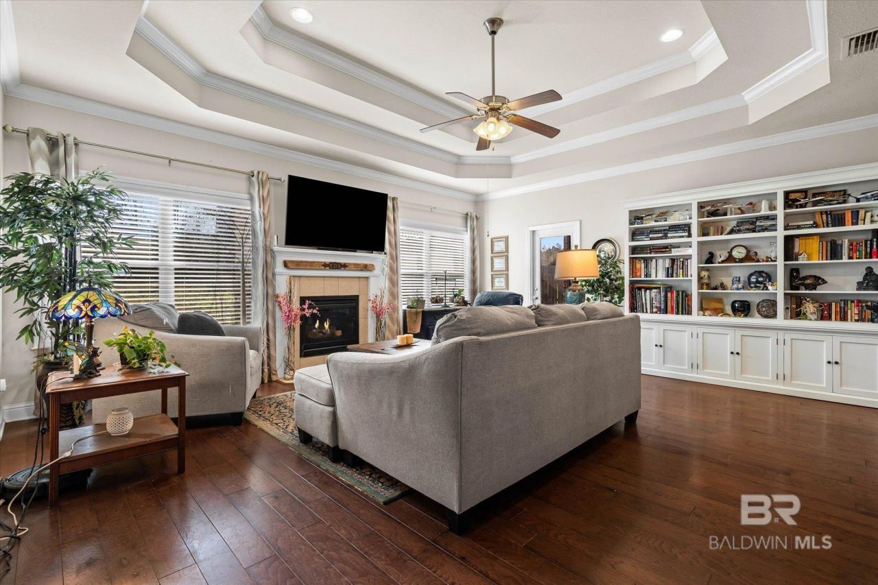Step into your new home with an amazing floor plan with living room, dining, den with fireplace screened patio overlooking a great fenced yard and a large kitchen with island in the heart of it all. The owners have taken pride in their lovely sanctuary with 5 bedrooms, 3.5 baths, granite in kitchen and baths, hardwood in dining and family area, complete with crown molding. GE Stainless appliances, ceramic tile, kitchen island, master bath tiled shower, private covered porch, courtyard entry, under eaves lighting, and a fenced yard. This Spanish Fort home is ready for you to move in and call it yours with space for everyone. The open floor plan is light and bright and offers the best in entertainment for you and your guests. The first floor provides a study, formal dining, a kitchen open to the living area with split floor plan for the bedrooms - the Primary Suite and Bath on one side and the other 2 bedrooms with full bath on the other side. Also, located on the first floor, is an additional half bath. Upstairs, you'll find 2 bedrooms and a full bath. One of these bedrooms could be used as a large FROG (Finished Room over Garage) or Bonus Room. It does, however, have a large walk-in closet -- if for an office space, perfect for supplies. Many uses come to mind. Transition from the 2-car garage, the mud room AND laundry room is equipped with a bench and hooks serving as a great landing place for your shoes, books, or bags. The previous owner used it as a luxury dog retreat. What's in the back yard? A screened-in porch and lovely gazebo. An ideal spot for winding down or reading a book or just relaxing, it is completely fenced with beautiful landscaping and trees. This neighborhood, Grace Magnolias, has another advantage of being connected by sidewalks. A charming place close to schools, shopping, eateries, restaurants, access to major roads and highways, the Jubilee Mall - grocery stores, and more! Call your favorite Realtor today for a showing of your very own. Buy