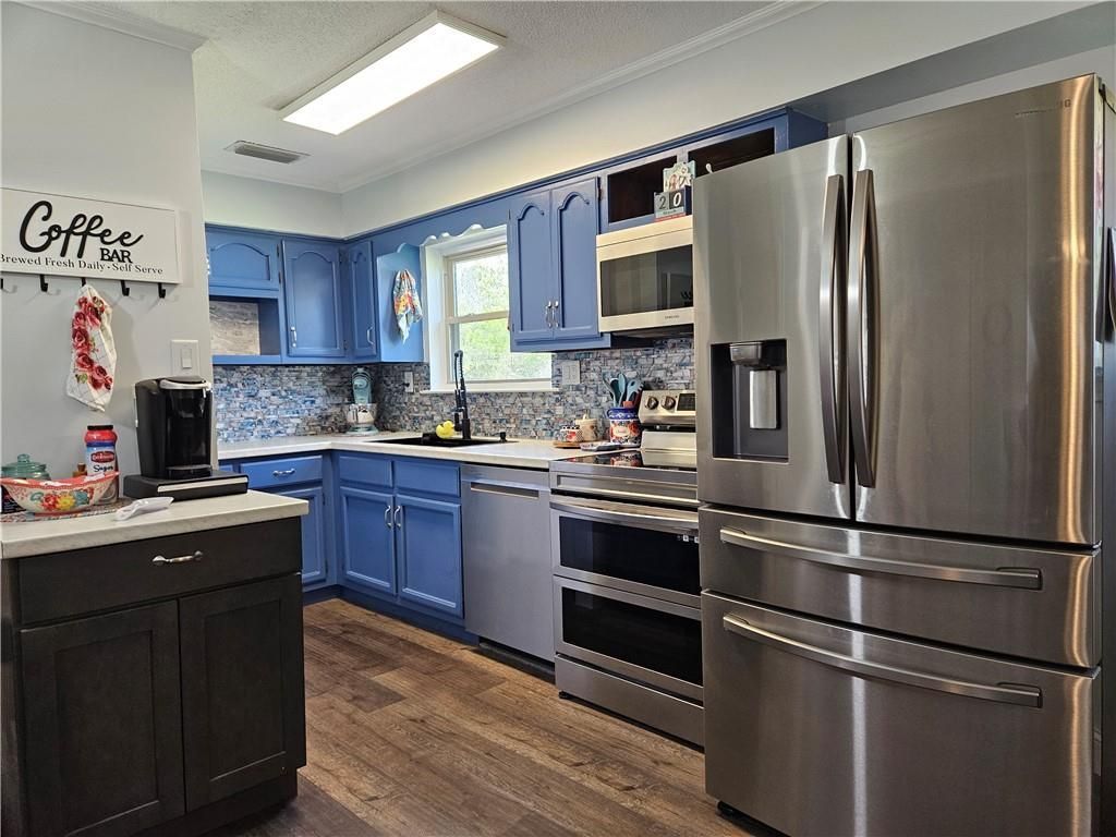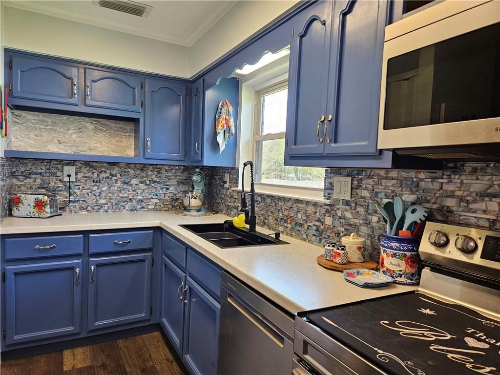 Welcome home to this comfortable 4-bedroom, 2-bath brick residence located in the heart of Grand Bay. No detail was spared in the recent top-to-bottom renovation, featuring HVAC system in 2019, freshly painted interior and new subflooring with stylish vinyl plank flooring. Roof in 2022. The open-concept layout is both efficient and inviting, showcased by a modern kitchen with Pioneer Woman inspired d?cor. The smart kitchen appliances include a dishwasher and an electric range with an oven and an air fryer and a wide French door refrigerator with roll out storage and a bottom freezer. The utility room is only steps away under the covered carport. The exterior is a hobbyist's dream, boasting a 600 sq. ft. metal garage/workshop (with water, power, and built-in workbench), plus an additional insulated storage building equipped with AC. The spacious, fenced rear yard offers privacy and room to roam. The home is Move-in ready and eligible for FHA, VA, or 100% USDA financing!