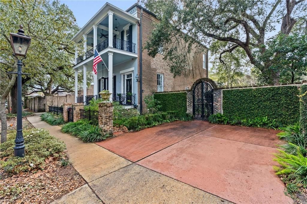 Located in popular Detonti Square, this stately historic home built in 1866 has been meticulously restored for today's lifestyle. From the two story balconies with ornate ironwork to the side bricked courtyard, this home offers several areas for entertaining and relaxing among the Oaks. Extra tall ceilings and windows allow an abundance of light to flow throughout the home and reflect on the beautiful wide planked pine floors. As you enter the home there a cascading staircase with a large central foyer opening up to a spacious living room and dining room. The owner currently uses the dining space as a second living area. A powder room extends off of the central foyer. A separate butler's pantry with breakfast area and kitchen are located in the rear of the home which overlooks a covered porch and patio. Upstairs are 3 spacious bedrooms each with fireplaces and 2 baths. Extra to this fabulous home includes off street parking on a brick driveway and fenced in front and backyard with brick and beautiful ornate ironwork.Buyer responsible for verifying all measurements and relevant details.