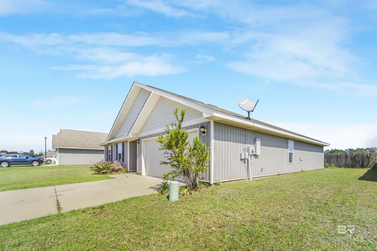 4 bedroom, 2 bathroom smart home featuring an open floor plan, situated on a spacious lot with a two-car garage and convenient access to downtown Foley. The kitchen offers stainless steel appliances and flows seamlessly into the living and dining areas, overlooking the partially fenced backyard.The primary suite includes a bathroom with double vanities, a separate water closet, walk-in shower, soaking tub, and a large walk-in closet. All four bedrooms are generously sized and thoughtfully positioned within the layout.Additional features include Low-E double pane windows with storm protection, architectural shingles, and an active termite bond. This home is Gold Fortified. Buyer to verify all information during due diligence.